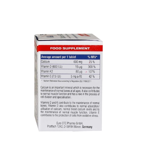 ویتامین K2 موجود در فرمولاسیون به پیشگیری از رسوب کلسیم در دیواره عروق خونی کمک میکند و در نتیجه از مشکلات قلبی-عروقی جلوگیری مینماید.