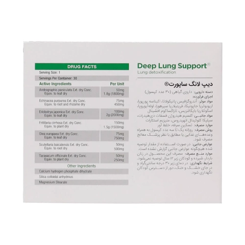 دیپ لانگ ساپورت گرین نیچر با بهرهگیری از ترکیبات گیاهی مؤثر، طیف گستردهای از نیازهای سیستم تنفسی را پوشش میدهد و برای تقویت ریه، کاهش سرفه و حمایت از بدن در دوران سرماخوردگی و آنفولانزا طراحی شده است.