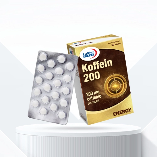 قرص کافئین یوروویتال ۲۰۰ میلی گرم بسته ۶۰ عددی