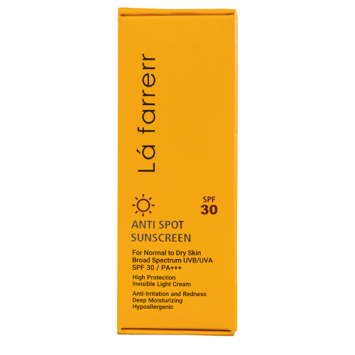 کرم ضد آفتاب و ضد لک اس پی اف ۳۰ بدون رنگ پوست نرمال و خشک لافارر