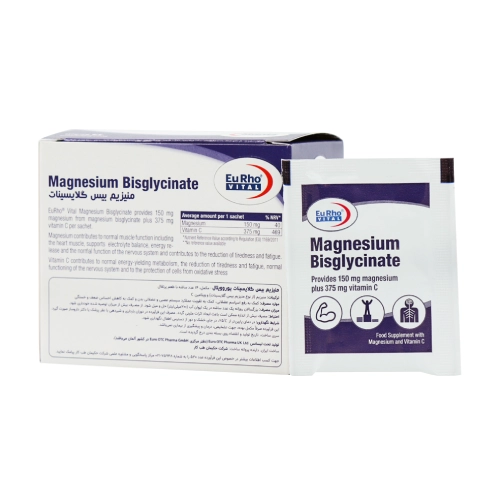 • منیزیم بیس گلیسینات یوروویتال، هر ساشه آن شامل ۱۵۰ میلیگرم منیزیم با جذب بسیار بالا است.