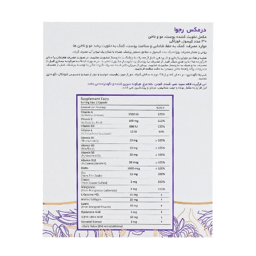 کپسول رجوا درمکس تقویت پوست مو و ناخن بسته ۳۰ عددی