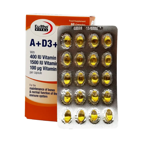 کپسول ویتامین آ و د۳ و کا۲ یوروویتال بسته ۶۰ عددی