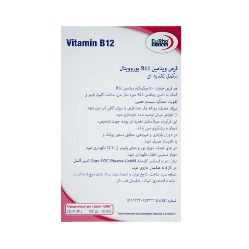 قرص ویتامین b12 یوروویتال بسته ۶۰ عددی