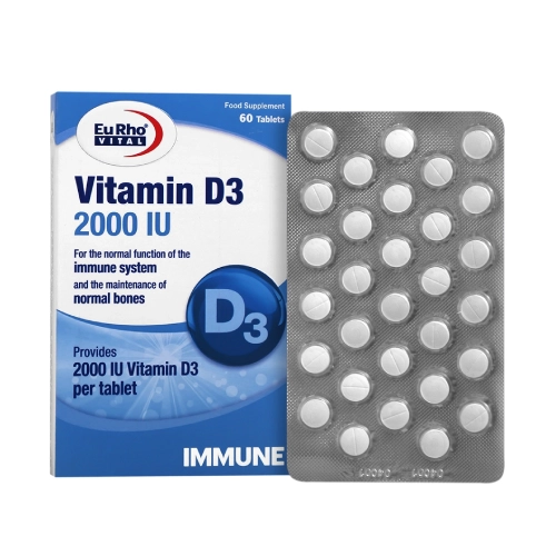 قرص ویتامین d3 2000 یوروویتال بسته ۶۰ عددی